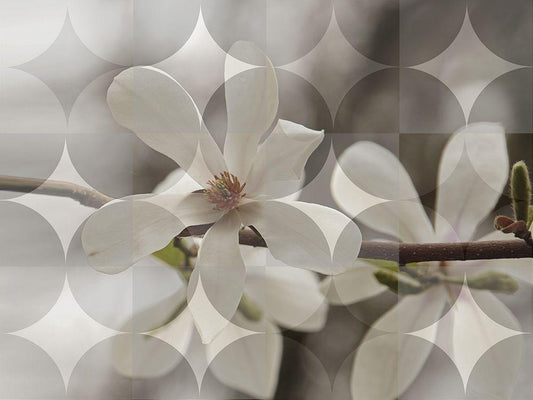 Floral Design Grays White Modern Wood Framed Art Print with Double Matting by Bartola