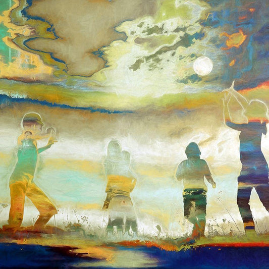 Playing with the Moon White Modern Wood Framed Art Print with Double Matting by Bolokofsky, Ronald