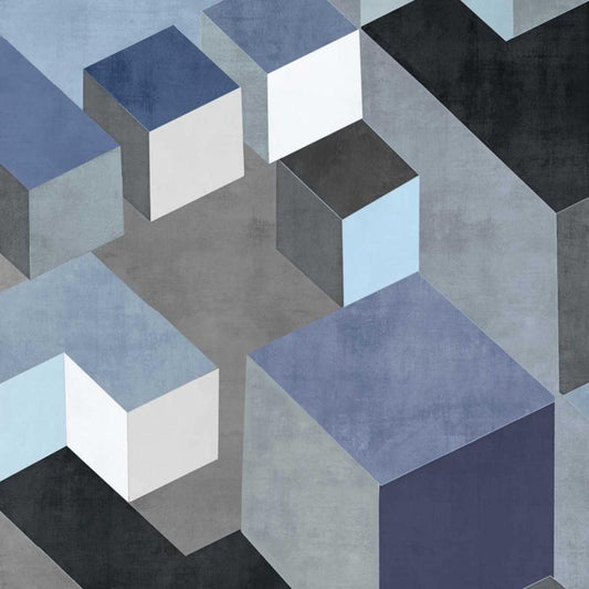 Cubic in Blue II White Modern Wood Framed Art Print with Double Matting by Simmions, Todd