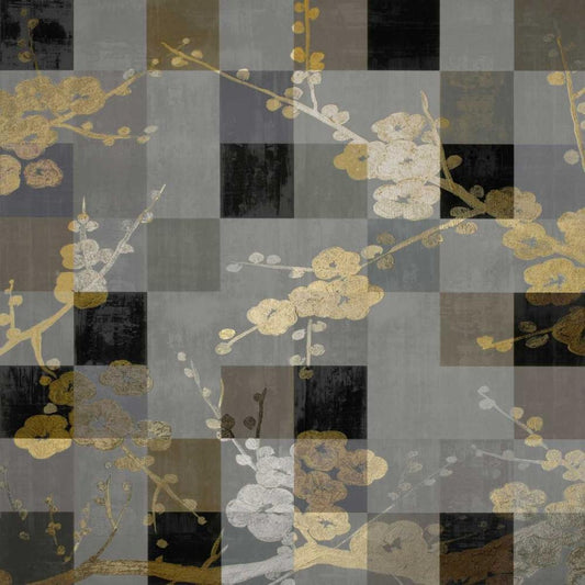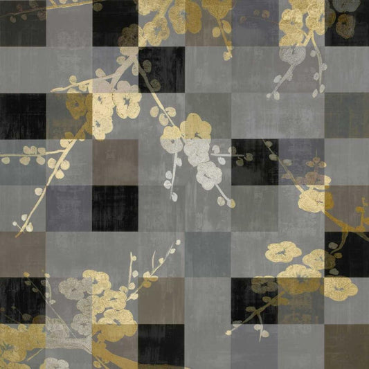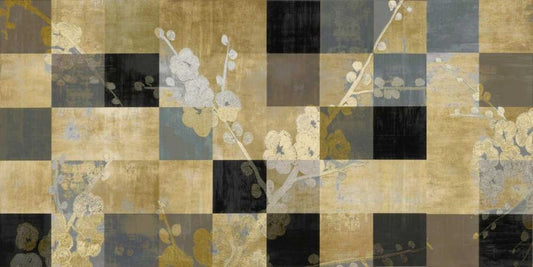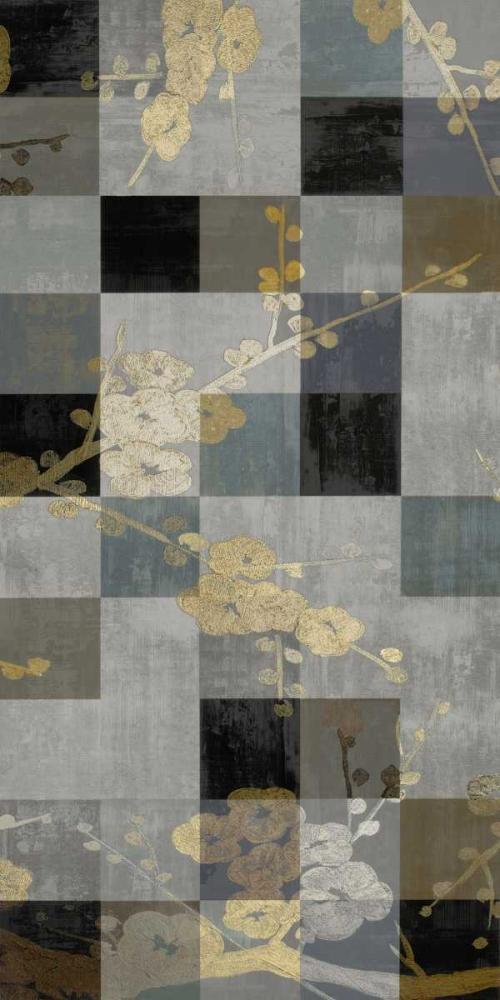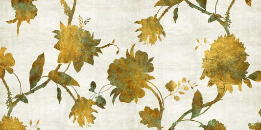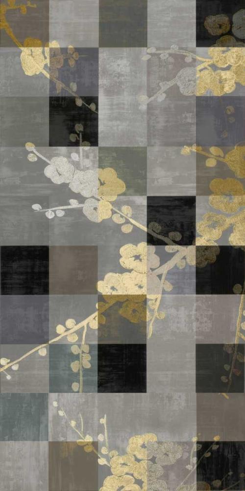 Blossoms In Gold White Modern Wood Framed Art Print with Double Matting by Lange, Erin