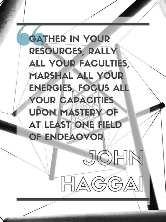 John Haggai Quote: Rally All Your Faculties White Modern Wood Framed Art Print with Double Matting by ArtsyQuotes