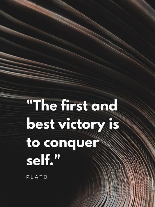 Plato Quote: Conquer Self White Modern Wood Framed Art Print with Double Matting by ArtsyQuotes