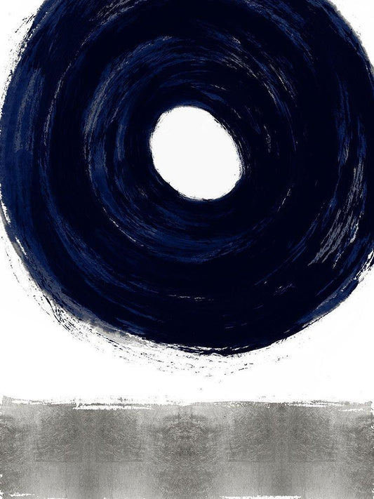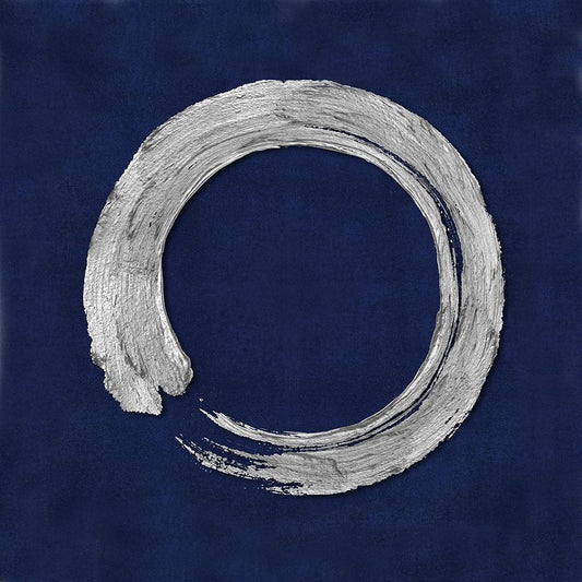 Silver Zen Circle on Blue I White Modern Wood Framed Art Print with Double Matting by Roberts, Ellie