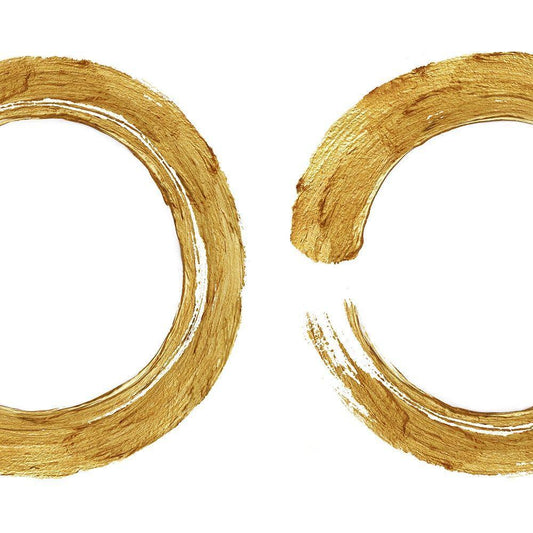 Gold Zen Circle on White I White Modern Wood Framed Art Print with Double Matting by Roberts, Ellie