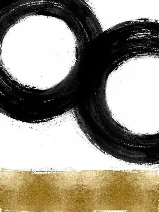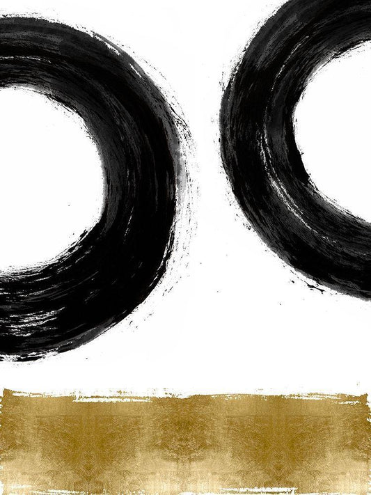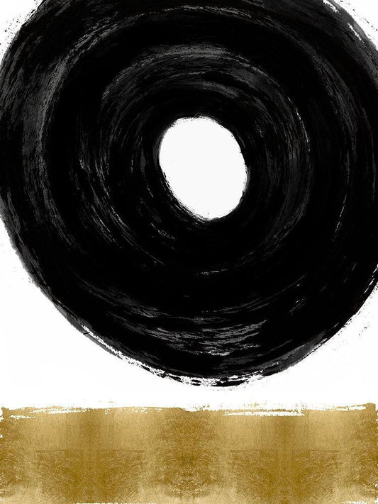 Black Zen Circle on Gold II White Modern Wood Framed Art Print with Double Matting by Roberts, Ellie
