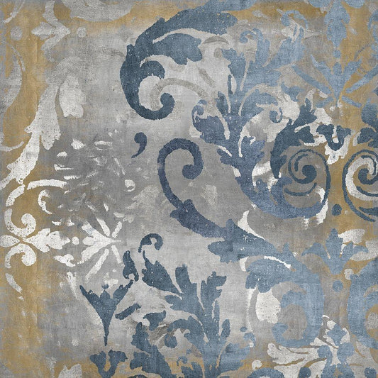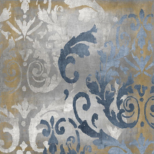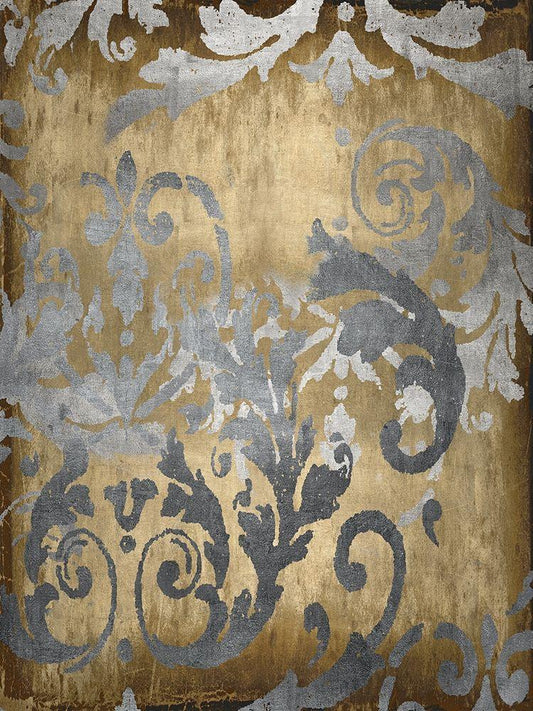 Damask in Silver and Gold II White Modern Wood Framed Art Print with Double Matting by Roberts, Ellie