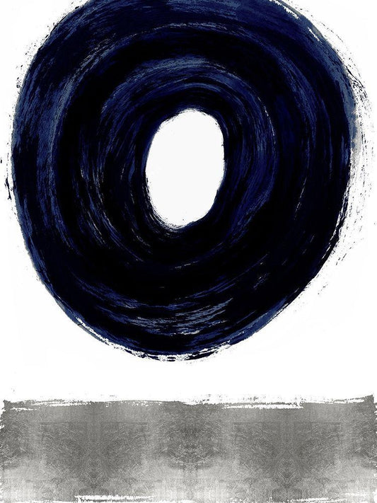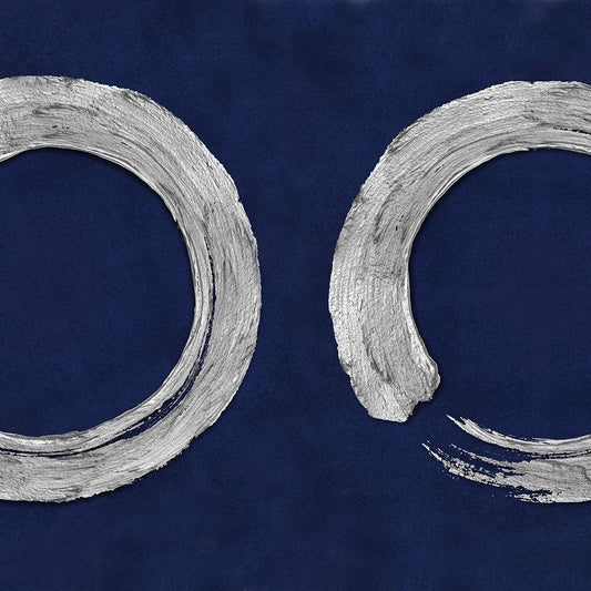 Silver Zen Circle on Blue II White Modern Wood Framed Art Print with Double Matting by Roberts, Ellie