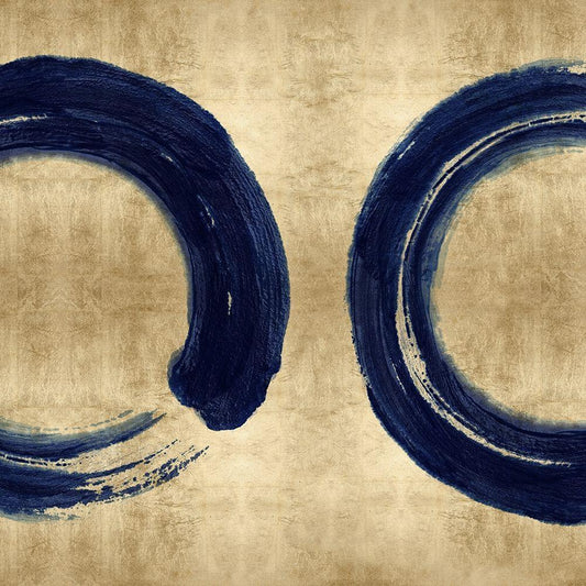 Blue Zen Circle on Gold II White Modern Wood Framed Art Print with Double Matting by Roberts, Ellie