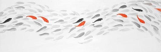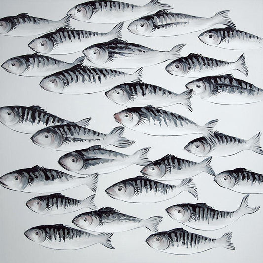 GRAY SCHOOL OF FISH White Modern Wood Framed Art Print with Double Matting by Atelier B Art Studio