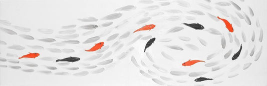 SWIMMING FISH SWIRL White Modern Wood Framed Art Print with Double Matting by Atelier B Art Studio