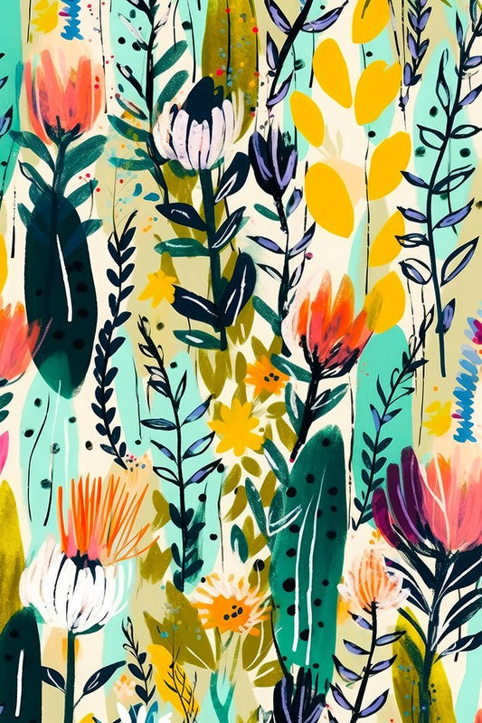 Spring Flowers White Modern Wood Framed Art Print with Double Matting by Treechild