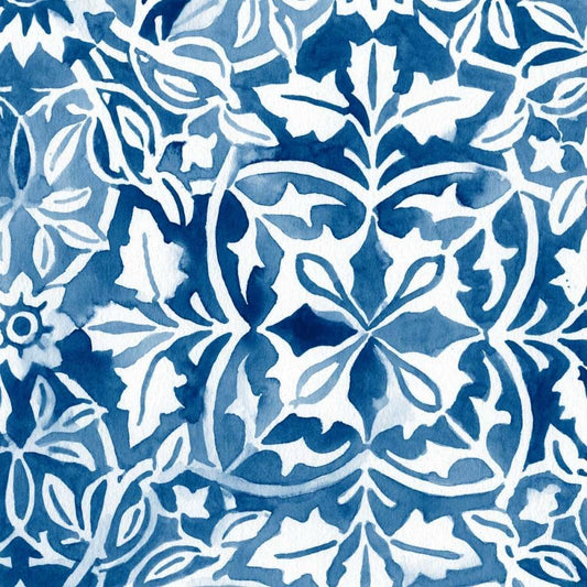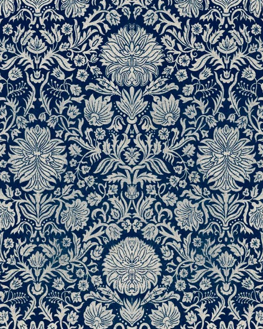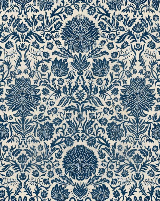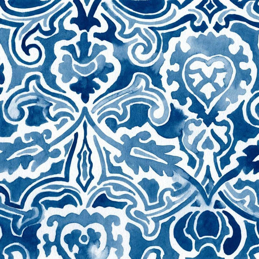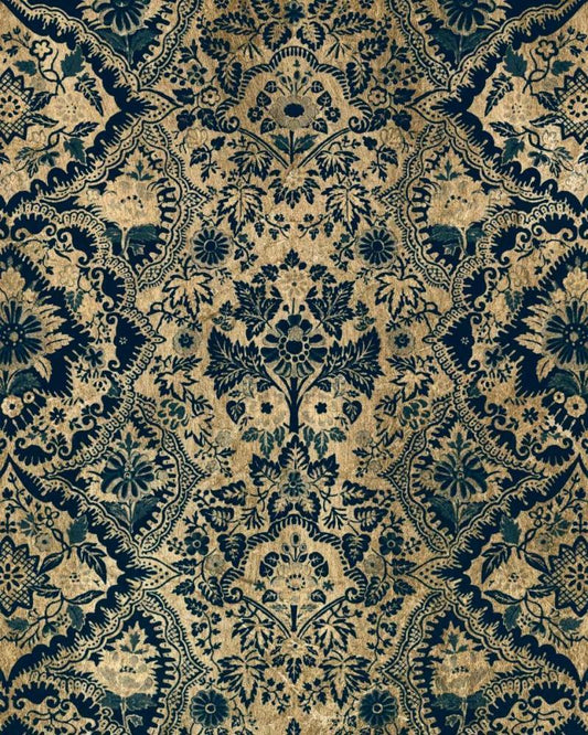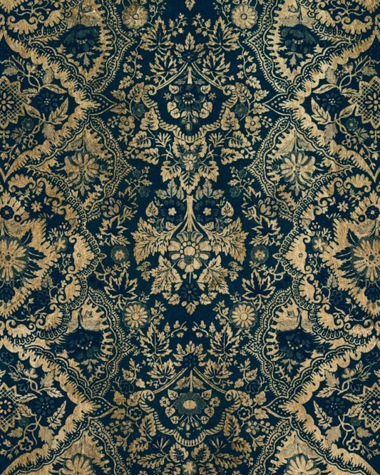 Baroque Tapestry in Aged Indigo I Black Ornate Wood Framed Art Print with Double Matting by Vision Studio