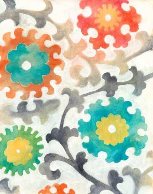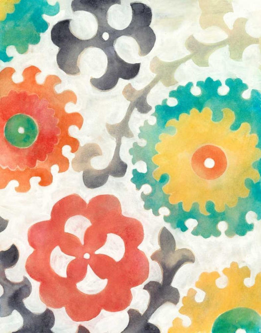 Batik Suzani I Black Ornate Wood Framed Art Print with Double Matting by Zarris, Chariklia