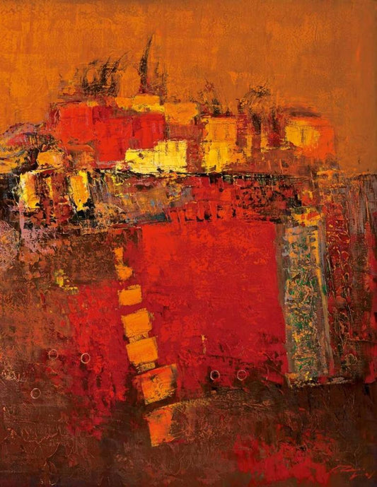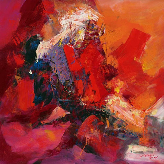 Rosso Astratto Black Ornate Wood Framed Art Print with Double Matting by Cusumano, Francesco
