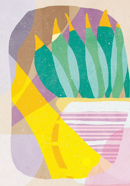 Boho Plant a Pot White Modern Wood Framed Art Print with Double Matting by Demir, Aylin