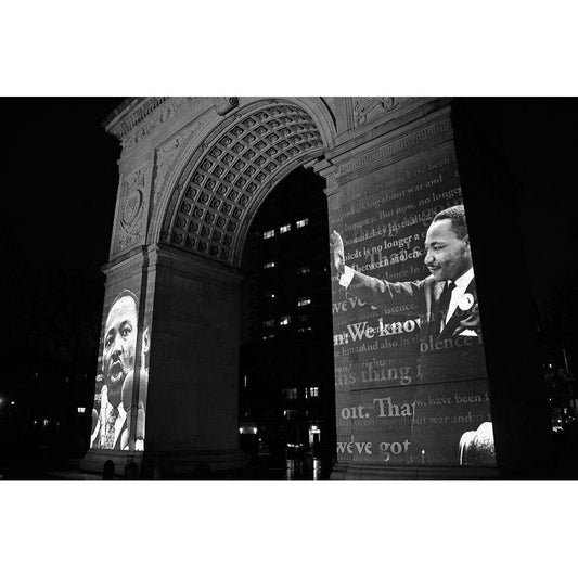 Martin Luther King Jr Projection on the Washington Square Arch NYC Black Modern Wood Framed Art Print with Double Matting by Maier, Phil