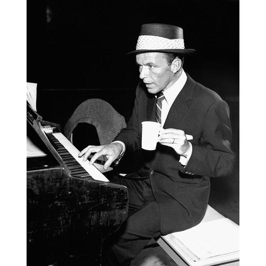 Frank Sinatra at the piano, 1954 Black Modern Wood Framed Art Print by Vintage Hollywood Archive
