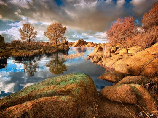 Rocky Lake I White Modern Wood Framed Art Print with Double Matting by Drost, David