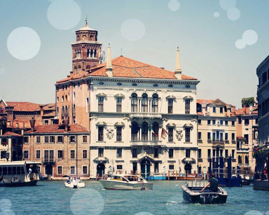 Venice Bokeh IX White Modern Wood Framed Art Print with Double Matting by Coomes, Sylvia