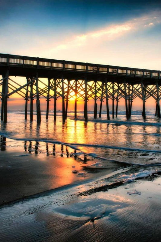 Pier Reflections II White Modern Wood Framed Art Print with Double Matting by Head, Danny