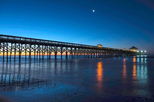 Moon at Folly Beach White Modern Wood Framed Art Print with Double Matting by Head, Danny