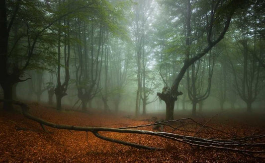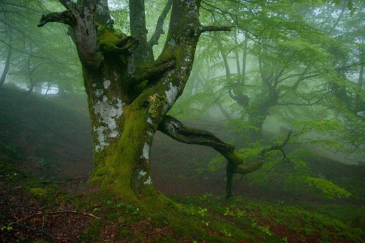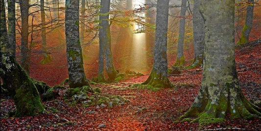Forest and sunbeam 820 White Modern Wood Framed Art Print with Double Matting by Palacios, J.A.