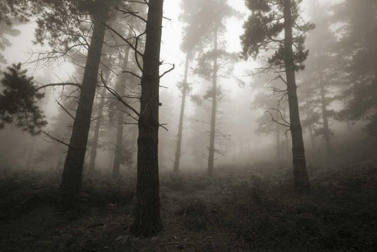 Forest and sunbeam 822 White Modern Wood Framed Art Print with Double Matting by Palacios, J.A.