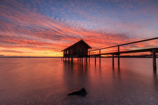 Sonnenuntergang am Ammersee White Modern Wood Framed Art Print with Double Matting by Scholz, Markus