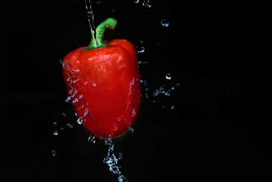 Spritziges Gemuse I White Modern Wood Framed Art Print with Double Matting by Riedt, Kirsten