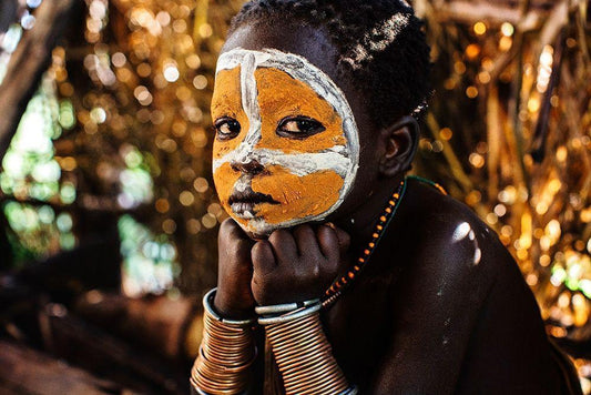 Karo girls sharing a scarf White Modern Wood Framed Art Print with Double Matting by Flour, Piet