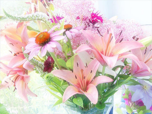 Pink Bouquet White Modern Wood Framed Art Print with Double Matting by Stalus, Judy