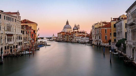 Canal Grande Sunset White Modern Wood Framed Art Print with Double Matting by Marnix