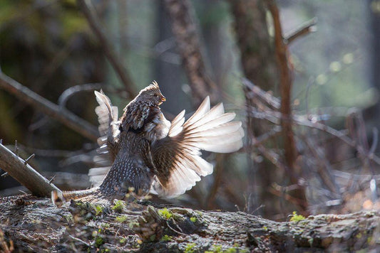Ruffed Grouse Drumming, Yellowstone National Park White Modern Wood Framed Art Print with Double Matting by Herbert, Neal