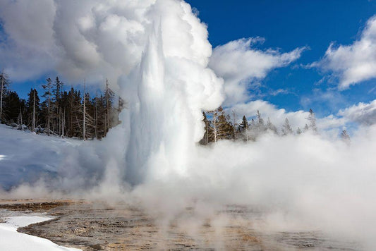 Grand Geyser Eruption, Yellowstone National Park White Modern Wood Framed Art Print with Double Matting by Frank, Jacob W.