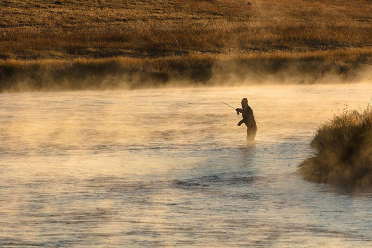 Fall Fishing on the Madison River at Sunrise, Yellowstone National Park White Modern Wood Framed Art Print with Double Matting by Frank, Jacob W.