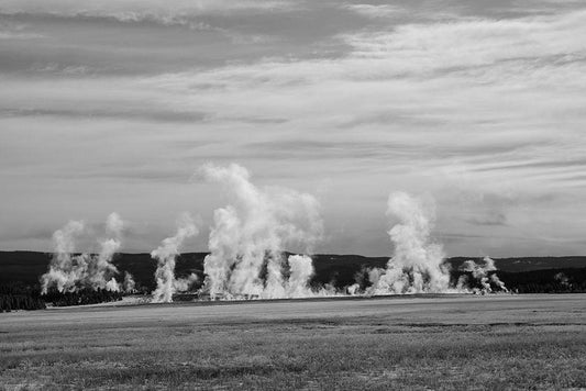 Frosty Morning in the Lower Geyser Basin, Yellowstone National Park White Modern Wood Framed Art Print with Double Matting by The Yellowstone Collection