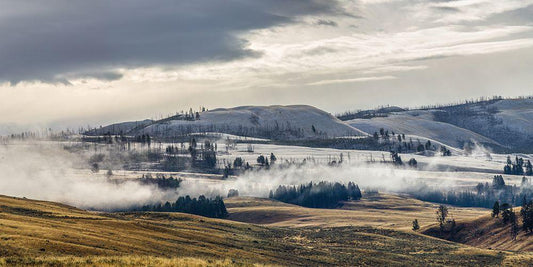 Dusting of Snow, Blacktail Deer Plateau, Yellowstone National Park White Modern Wood Framed Art Print with Double Matting by The Yellowstone Collection