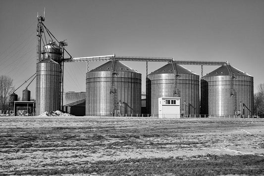 A row of metal grain silos in Michigan USA White Modern Wood Framed Art Print with Double Matting by Highsmith, Carol