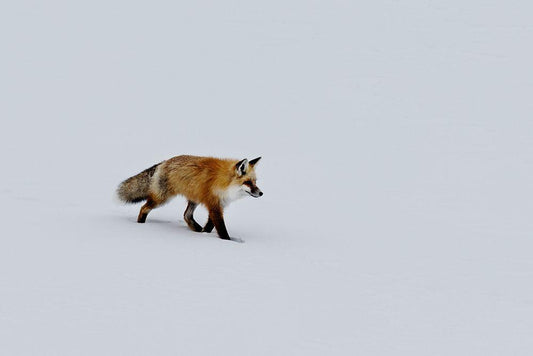 A red fox prowls for voles White Modern Wood Framed Art Print with Double Matting by Highsmith, Carol