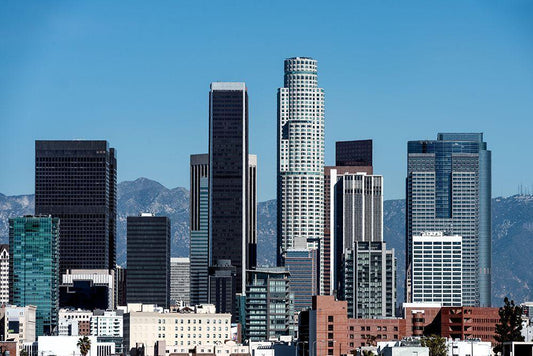 Skyline view of Los Angeles-California White Modern Wood Framed Art Print with Double Matting by Highsmith, Carol