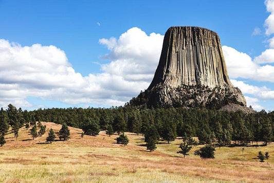 Americas first declared national monument-Devils Tower-Wyoming White Modern Wood Framed Art Print with Double Matting by Highsmith, Carol