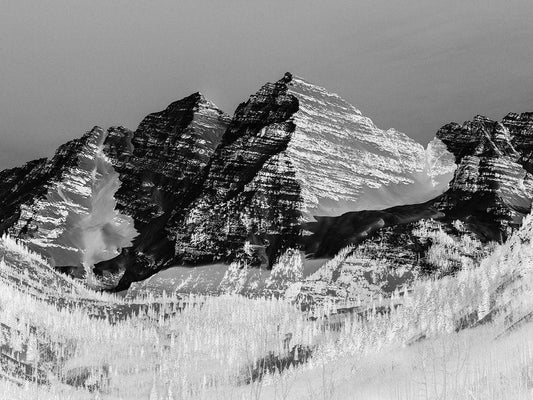 The Maroon Bells-Rocky Mountains-Aspen-Colorado-Black And White White Modern Wood Framed Art Print with Double Matting by Highsmith, Carol
