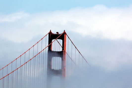 Fog over the Golden Gate Bridge in San Francisco-California White Modern Wood Framed Art Print with Double Matting by Highsmith, Carol