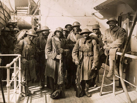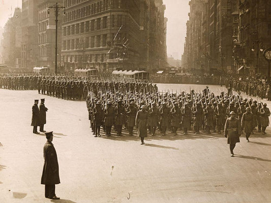 WWI The famous 369th arrive in New York City White Modern Wood Framed Art Print with Double Matting by U.S. Archives