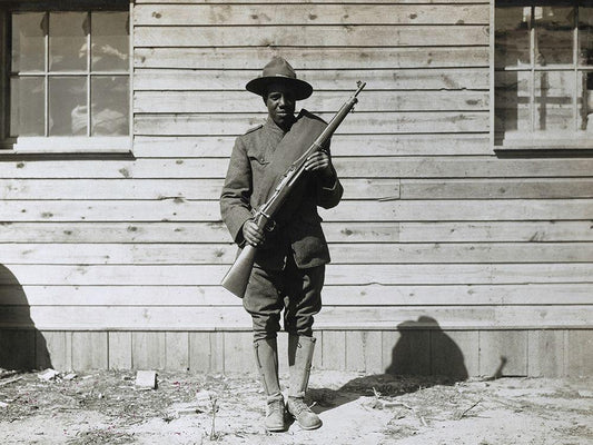 WWI Colored member of the telephone and telegraph battalion at Camp Upton-Long Island White Modern Wood Framed Art Print with Double Matting by U.S. Archives