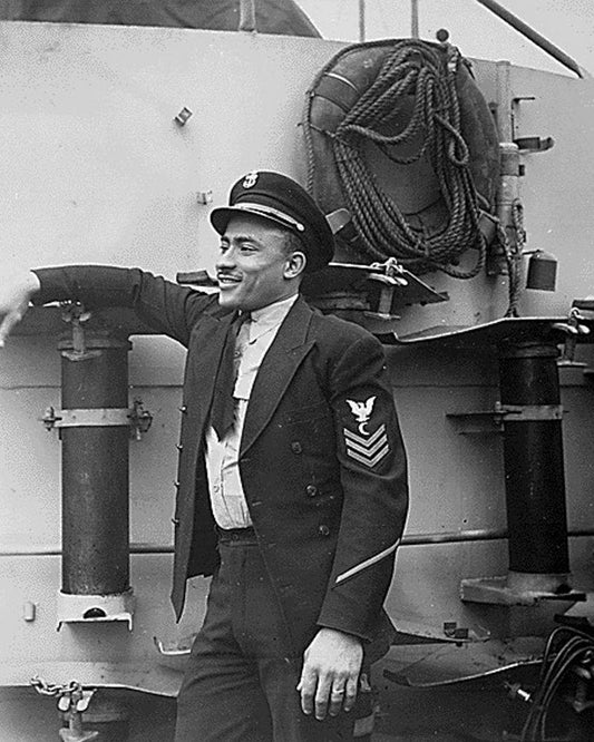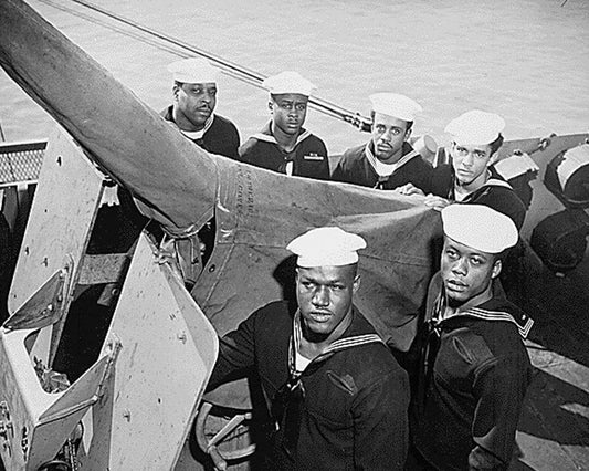 WWII A Navy gun crew who were all awarded the Navy Cross White Modern Wood Framed Art Print with Double Matting by U.S. Archives