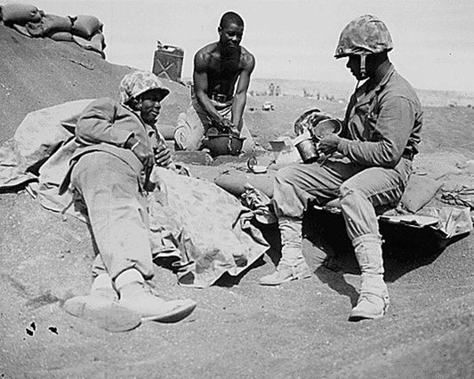 WWII Marines decorated by the famed Second Marine Division White Modern Wood Framed Art Print with Double Matting by U.S. Archives