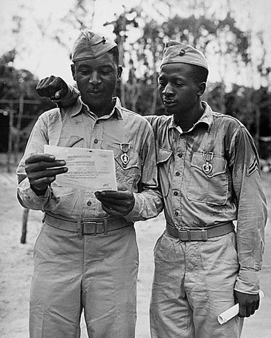 WWII Jackie Wilson (left) and Ray Robinson White Modern Wood Framed Art Print with Double Matting by U.S. Archives