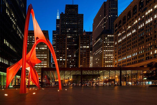 Night view of Chicago Federal Center Chicago Illinois White Modern Wood Framed Art Print with Double Matting by Highsmith, Carol