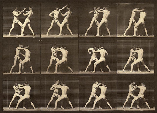 Motion Study: Men Fighting White Modern Wood Framed Art Print with Double Matting by Muybridge, Eadweard J.
